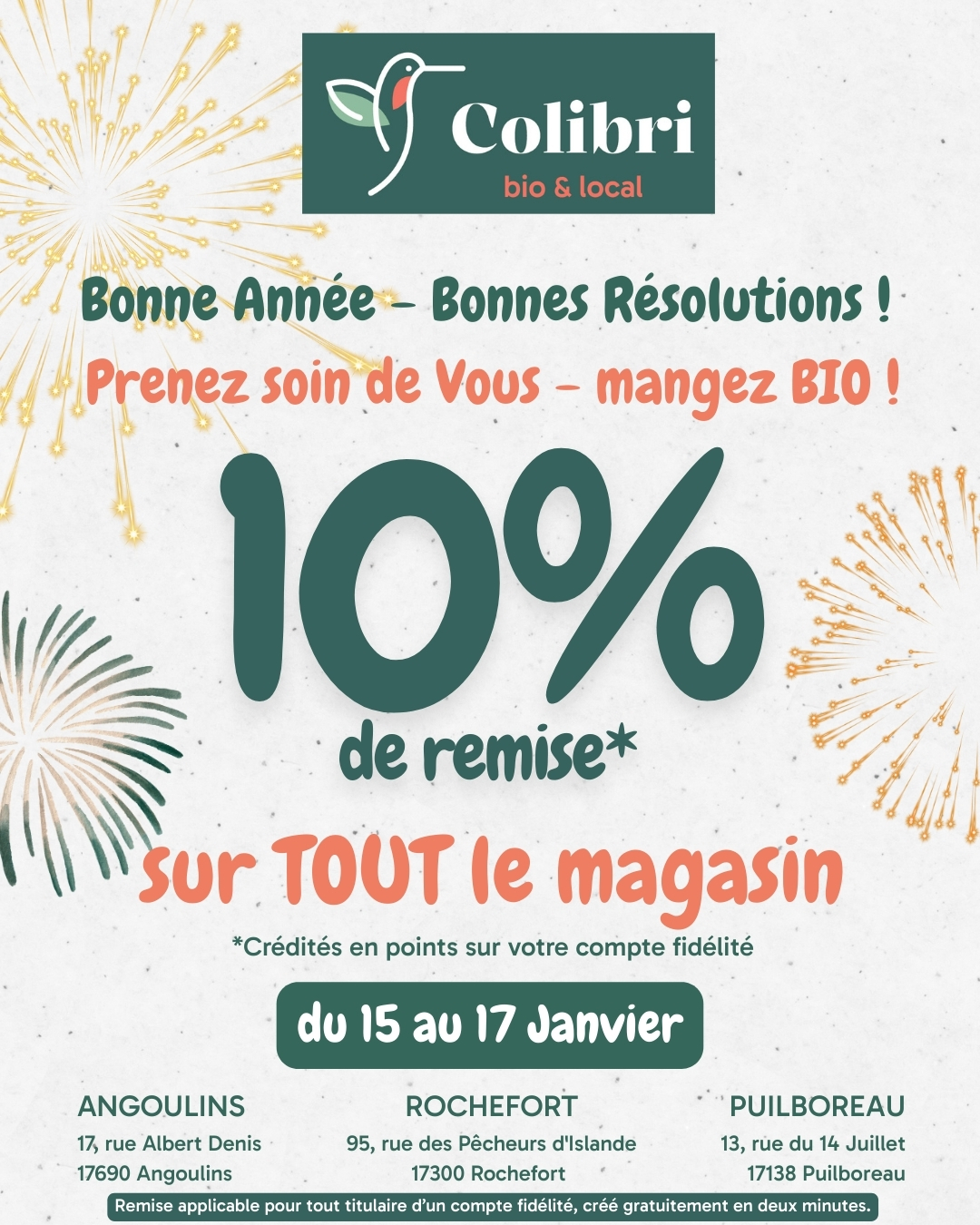 Colibri Puilboreau et Angoulins | Ouvert du lundi au samedi de 9h à 19h30